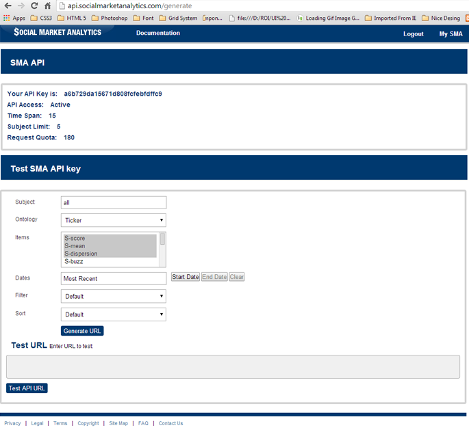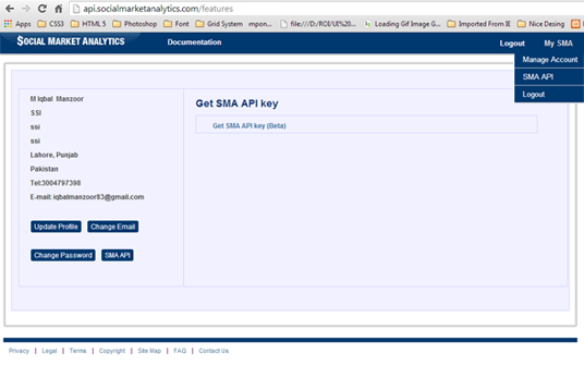 Upon successfull sign-in, following screen shall showcase the SMA features. You may generate SMA API Key via 'My SMA' menu option or by visiting SMA API (Beta) section.